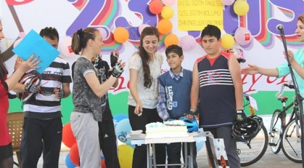 Öte yandan etkinlikte engelli öğrenciler ve üniversite öğrencileri tarafından pasta kesildi.