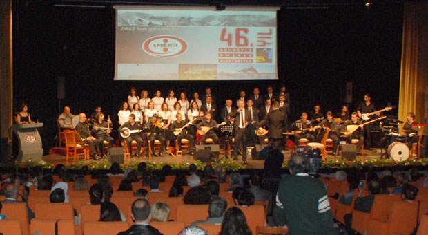 Erkoç, zaman zaman vokalistleriyle sürdürdüğü espriler ve anekdotlarla süslediği konserde, ?Türk sanayinin gözbebeği Erdemir?in 46. işletme yıldönümü etkinliğinde sizlerle beraber olmaktan mutluyum. Bu imkanı sağladığı için Erdemir?e teşekkür ediyorum. Doğum gününüz kutlun? dedi.