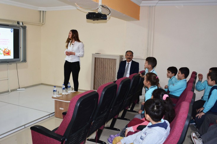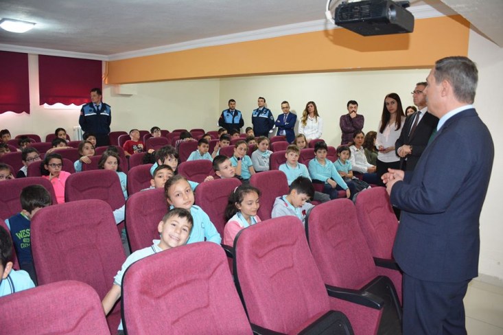 Okul Müdürü Yaşar Ciğer tarafından karşılanan Başkan Uysal, Zabıta Müdürlüğü personelinin ‘Bilinçli tüketicilik, şehir yaşamı ve çevrecilik, hijyen ve sağlık’ konularını içeren ‘Çocuk Zabıta’ seminerini öğrencilerle birlikte takip etti.