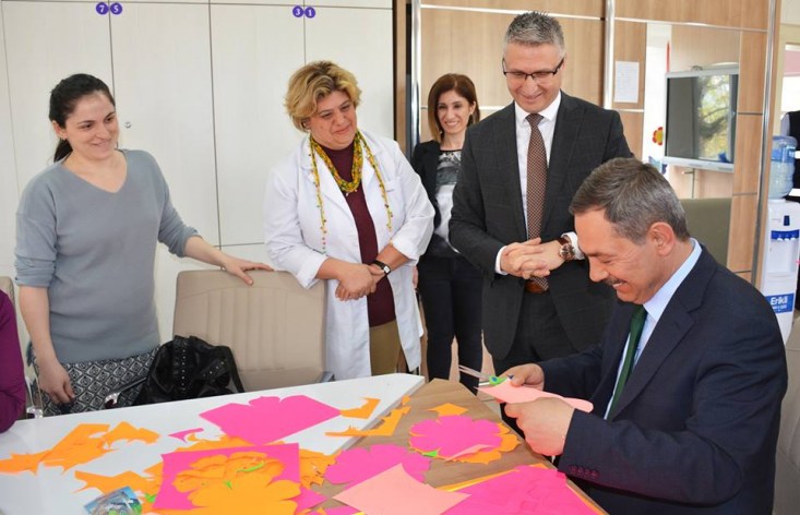 Başkan Uysal daha sonra Erdemir İlkokulu öğretmenleriyle bir araya gelerek 23 Nisan hazırlıklarına destek verdi.
