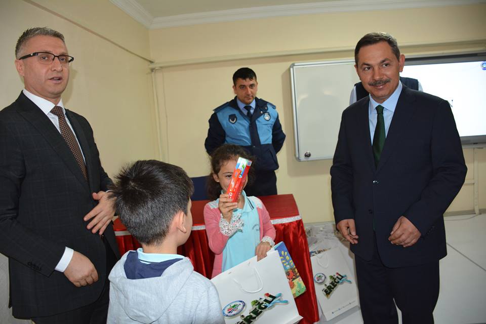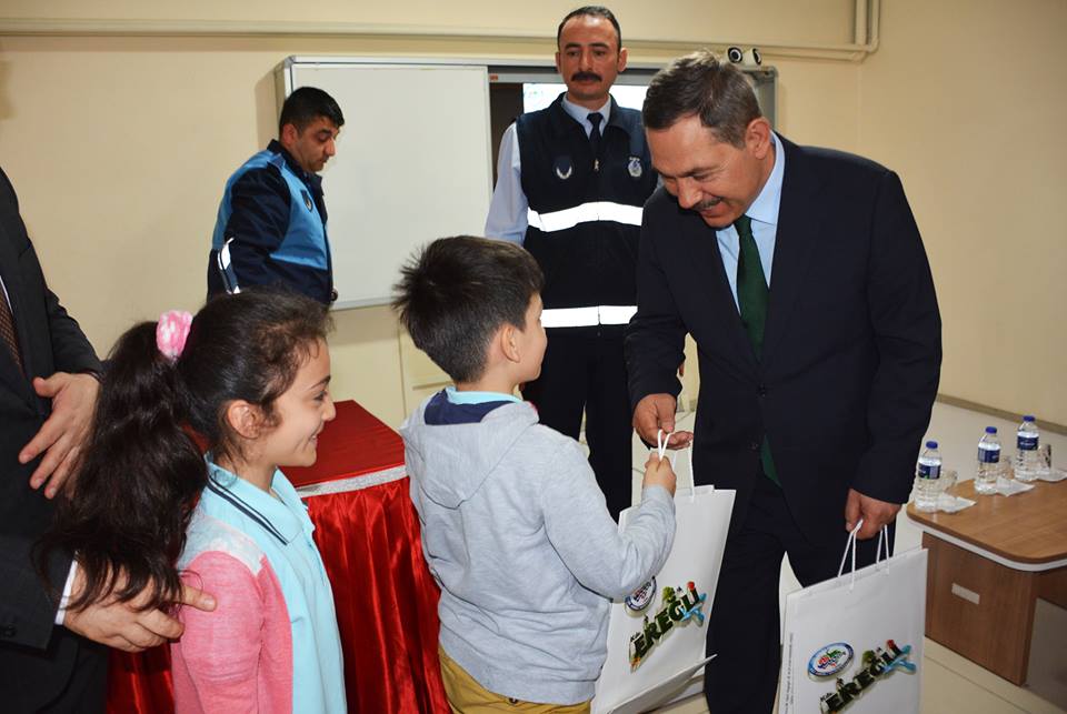 Kdz.Ereğli Belediye Başkanı Hüseyin Uysal, Zabıta Müdürlüğünün ‘Çocuk Zabıta Eğitimi’ projesi kapsamında Erdemir İlkokulunda öğrencilerle bir araya geldi.