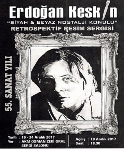 Keskin’in 55. Sanat Yılı dolayısıyla hazırladığı “Siyah Beyaz Nostalji Konulu Retrospektif Resim Sergisi’nin açılışı, 19 Aralık 2017 Salı günü 18.30’da Atatürk Kültür Merkezi Osman Zeki Oral Sergi Salonu’nda açılacak. Ressam Keskin’in 11. Kişisel sergisi olan Retrospektif Resim sergisi, 24 Aralık Pazar gününe kadar gezilebilecek.