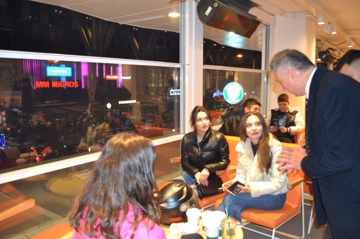 "Genç kardeşlerimizin vakit geçirdiği Colombia ve Arabic İsimli kafelerde ziyaret ettim. Biz gençlerimizi seviyoruz, biz gençlerimize güveniyoruz, biz gençlerimizle Türkiye Yüzyılı’na yürüyoruz. Bizlere yakın ilgi gösteren ve önerilerini getiren gençlerimize teşekkür ediyoruz"