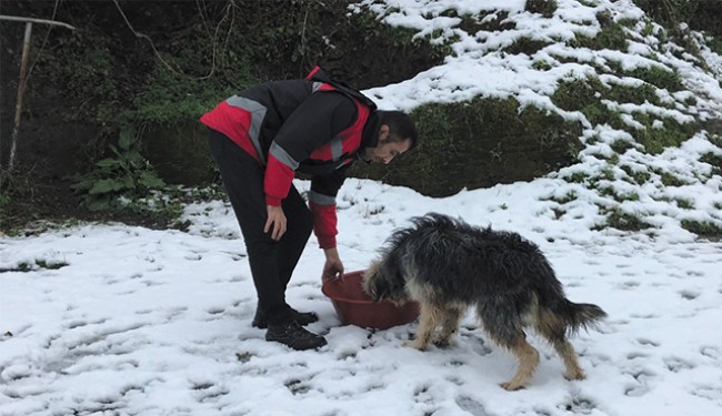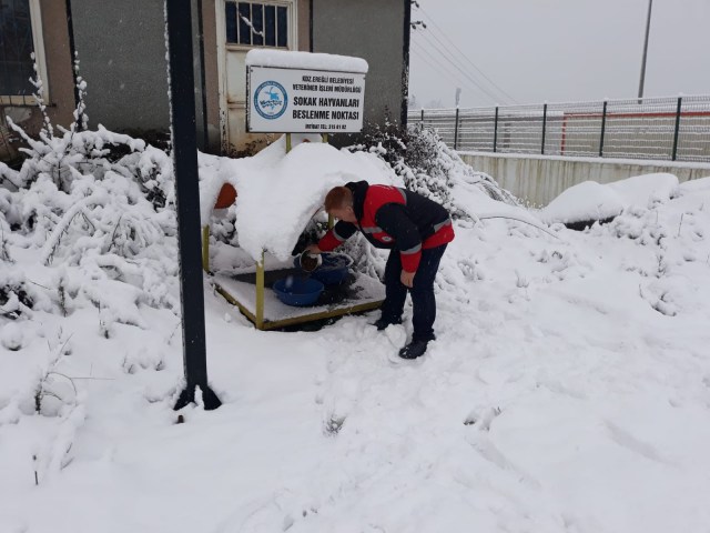 Kdz.Ereğli Belediyesi bölgemizi etkisi altına alan yoğun kar yağışı nedeniyle karla mücadele çalışmalarını sürdürürken, sokak hayvanlarını da unutmadı.