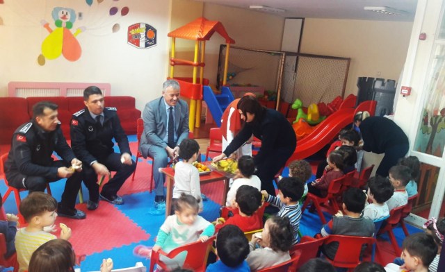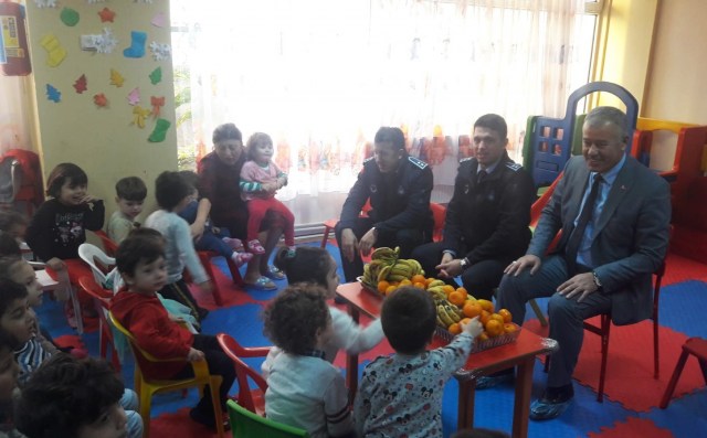 Zabıta Müdürü Halit Aydın ve zabıta ekipleri daha sonra Belediye Kreşi’ne geçerek öğrencilere yerli muz ve mandalina ikram etti. Aydın, yerli ürünlerinin kullanılmasının önemi hakkında bilgi verdi.