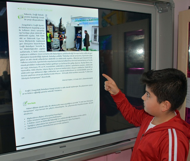 MEB’in ilkokullar için hazırladığı Sosyal Bilgiler Kitabı ‘Bilim ve Teknoloji ve Toplum’ bölümünde 104.sayfasında Kdz. Ereğli Belediyesi’nin başlattığı örnek proje haberi yer alırken, haberde çevreye zarar veren elektronik ve elektrikli atıkların geri dönüşümü ve ülke ekonomisine kazandırılması anlatılıyor.