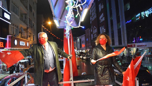 Vatandaşlar balkonlardan, pencerelerden, yol kenarından, araçlardan, kornalarla, bayraklarla Cumhuriyet coşkusuna katıldı, konvoyu selamladı. Başkan Halil Posbıyık, eşi Neriman Posbıyık’la birlikte müzik aracından yol boyunca ellerindeki bayraklarla Ereğli halkının Cumhuriyet Bayramını kutladı.