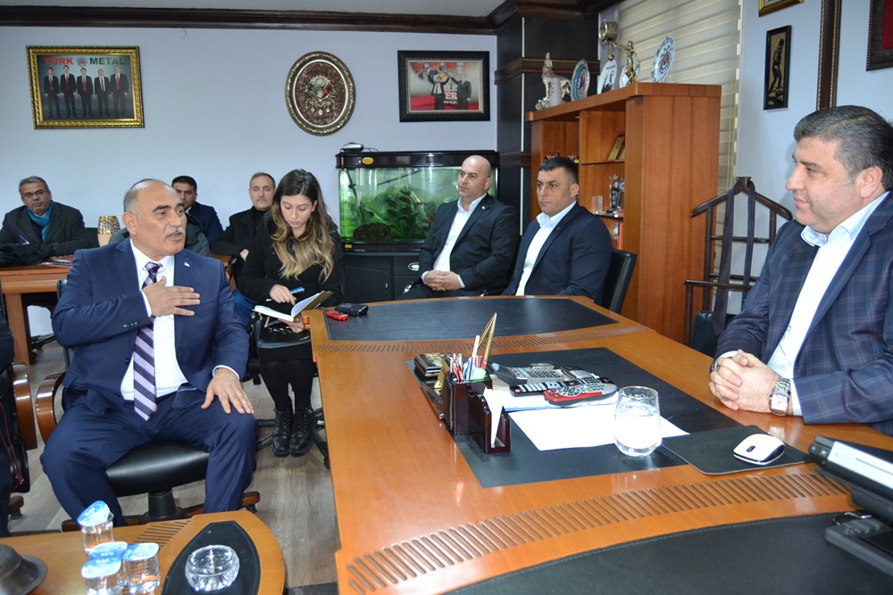 Türk Metal Sendikası Ereğli Şube Başkanı Metin Ercan, ziyaretten duyduğu mutluluğu dile getirerek şunları söyledi: “Bir toplu sözleşme sürecindeyiz. Bu toplu sözleşme süreci öncekilerden biriydi bizim için. Daha önce altı oturum yaptık. Beşinci oturumu uyuşmazlıkla kapattık. Amacımız masa başında bitirmek. Süreç bizi nereye kadar götürecek, biraz ülkenin şartları var, gerekse Erdemir işleyişinden, gerekse bizim taleplerimizden dolayı. Diğer toplu sözleşmelerden tek farkı vardı. Hiçbir zaman karamsarlığa düşürmedi bizi, 54 maddeyle uyuşmazlık tutuldu. Bu dönem idari maddelerde çok baskın bir taraf sergiledi Erdemir yönetimi. Genel başkanımızın katıldığı son toplantıda tüm idari maddeleri geçtik. Ücret ve ücrete bağlı sosyal haklarla ilgili işverenini teklifini ortaya koymasını bekleyeceğiz. Toplu sözleşmeden sonra da birinci amacımız Erdemir çalışanının huzuru ve refahını sağlamak olacak. İçinde yaşadığımız topluma baktığımız zaman, ilçemizin yeni yatırımlara, Erdemir’in yeni yatırımlar yapmasına ihtiyaç var. Bir sendikanın görevi sadece masa başında bir toplu sözleşmeyi bitirmek değil, ilçedeki ekonomik şartları dengelemek de olmalıdır. Bu anlamda çıktığınız yolda başarılar diliyorum.”