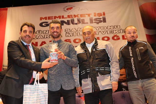 Programın sonunda, AK Parti İlçe Başkanı Fatih Çakır’ın, eşi ile birlikte çiçek ve çeşitli hediyeler takdim ettiği Dünya Süporsport Şampiyonu, AK Parti Sakarya Milletvekili Kenan Sofuoğlu, gelişi gibi kalabalığın sevgi gösterileri ile polis eskortu ve motosikletliler eşliğinde ilçeden ayrıldı.