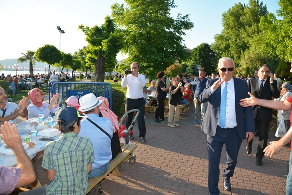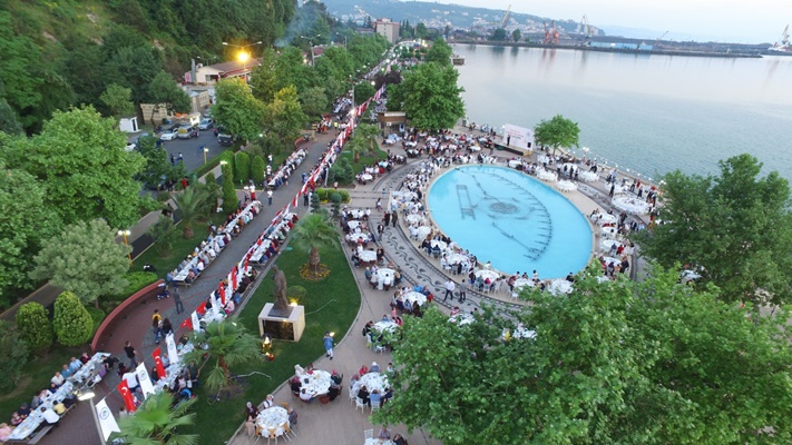 Elif Otel ile Erdemir idari binası arasında kalan sahil bandında gerçekleşen İftar yemeği için oluşturulan 10 bin kişilik masa düzeni dolarken 2 bin kişi de yerleri daha önce hazırlanan yer sofralarında birlikte oruç açtı.