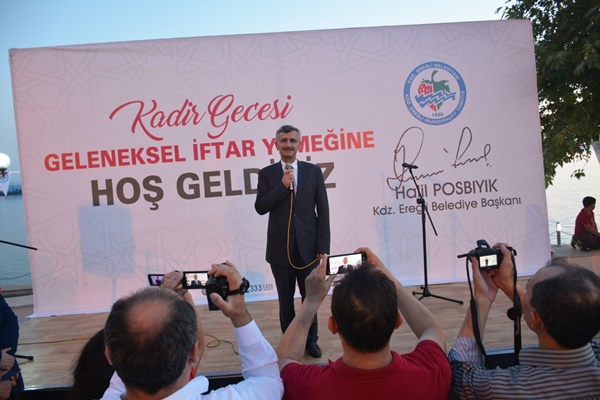 Kdz. Ereğli Belediyesi’nin düzenlediği geleneksel Kadir Gecesi programında 12 bin kişi birlikte iftar açtı. Zonguldak Valisi Erdoğan Bektaş ve Belediye Başkanı Halil Posbıyık, halkın Kadir Gecesi’ni ve Ramazan Bayramı’nı kutladı.