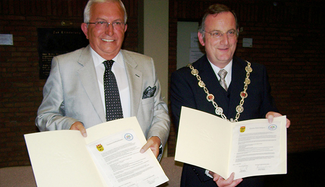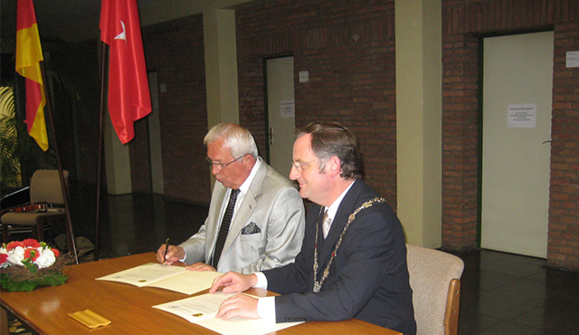 Kardeş kent protokolünün Ereğli ayağı Kdz. Ereğli Belediye Başkanı Halil Posbıyık ile Düren Belediye Başkanı Paul Larue arasında 3 Temmuz 2010 tarihinde, Almanya ayağı ise 17 Eylül 2011'de imzalanmıştı.