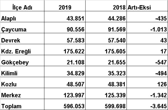 Buna göre Kdz.Ereğli'nin nüfusu sabit kaldı..