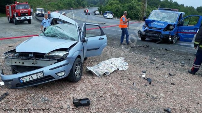 Kaza Zonguldak Ereğli Karayolu’nun 24. kilometresinde meydana geldi. Edinilen bilgiye göre Mustafa Alperen Satuk idaresindeki 67 FA 940 plakalı otomobil Jandarma Er Fırat Yiğit idaresindeki jandarmaya ait minibüs ile çarpıştı.