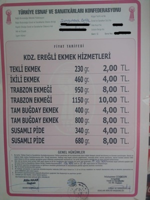 PİDE VE EKMEK FİYATLARI LİSTESİ