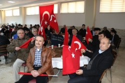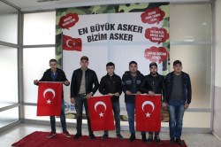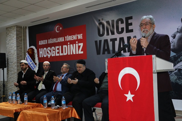 Saygı duruşu ve istiklal marşı okunması ile başlayan ve kur’an-ı Kerim Tilaveti ile devam eden programda ilk konuşmayı 98/1 tertip asker adayları adına Belediye Veteriner işleri müdürlüğünde çalışan ve tertipleri ile askere gidecek olan Özgür Coşkun yaptı. Coşkun konuşmasında “Bugün şahsımın da dahil olduğu Vatani görevini yapmak için can atan kardeşlerimizi uğurlamak için toplanmış olduğumuz bu salonda söylemek isterim ki gerek Afrin’de gerekse de ilke sınırları içerisinde Devletimize, milletimize vatanımıza ve bayrağımıza karşı yapılan tüm hain girişimleri bozmak için gerekirse canımızı ortaya koyacağımızdan kimsenin şüphesi olmasın “dedi.
