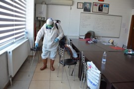 Çin'in Vuhan kentinde 90 gün önce ortaya çıkan yeni tip corona virüsün başka pek çok ülkeye 1-2 hafta içinde bulaşmasının ardından Ereğli genelinde dezenfekte çalışmalarına başlayan ve halkın ortak kullanım alanlarında ilaçlama çalışması yapan Karadeniz Ereğli Belediyesi Veteriner İşleri Müdürlüğü'ne bağlı Vektör Kontrol ve İlaçlama Merkezi personeli, Sağlık Bakanlığı’nın virüsün Türkiye’de de görüldüğü açıklamasının üzerine tedbirlerini artırdı.