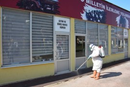 Çocuk parkları, otobüs durakları, halk otobüsleri, katlı otopark, cami şadırvanları, tuvaletler gibi halkın ortak kullanım alanlarında yapılan dezenfekte çalışmalarına ilaveten terminal, belediye hizmet binaları, resmi hizmet kurumları da dezenfekte edildi.