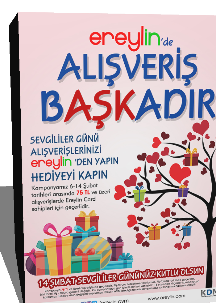06-14 şubat tarihleri arasında Ereylin AVM de bulunan mağazalarımızdan tek seferde 75 TL alışveriş yapan Ereylin Card sahibi ziyaretçilerimiz sevgi ağacımızda bulunan zarflardan dilediğini seçerek zarfta yazan hediyeyi almaya hak kazanacaklar.