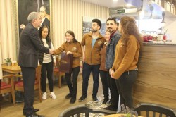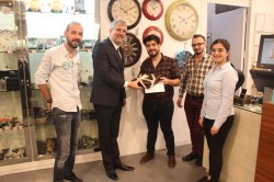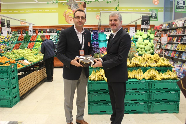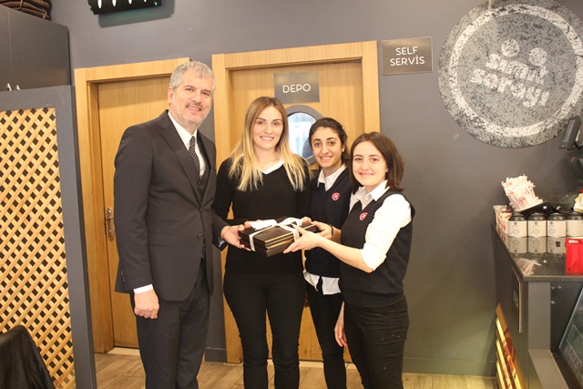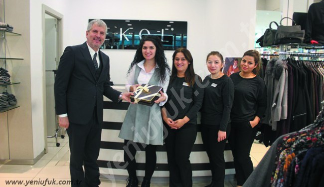Hediyelerini AVM Müdürü Hamit Atay'ın elinden alan mağaza çalışanları bol bol hatıra fotoğrafı çektirdi..