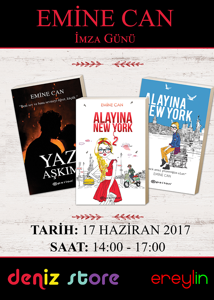 Her hafta sonu farklı bir etkinlik ile Kdz.Ereğli halkının karşısına çıkan Ereylin AVM'de bu sefer 17 Haziran saat 14.00-17.00 saatleri arası Alayına New York kitabıyla tanınan Emine Can'ın imza günü yapacağı bildirildi.
