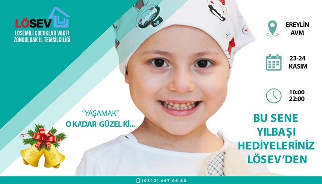 Lösemili Çocuklar Vakfı (LÖSEV) standı 23-24 Kasım 10:00-22:00 saatleri arasında Ereylin Alışveriş Merkezi zemin katta hizmete açılmıştır. Bu sene yılbaşı hediyelerinizi Lösev’den almayı unutmayın !