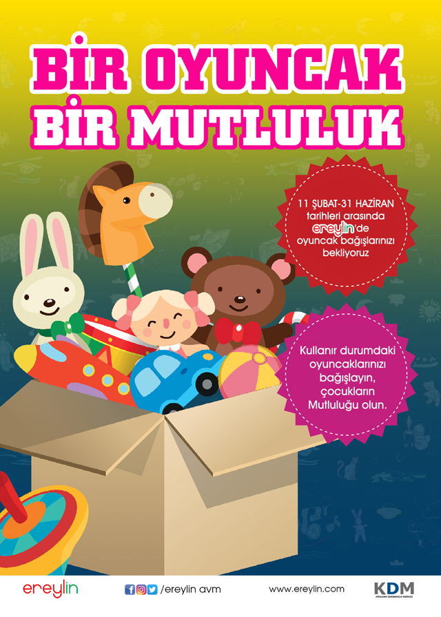 Ereylin Alışveriş Merkezi tarafından başlatılan "Bir oyuncak, bir umut", kampanyasından toplanan oyuncakların sahiplerine ulaştırıldığı bildirildi..