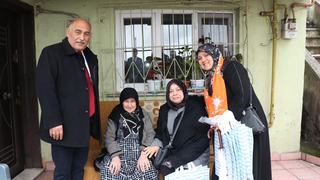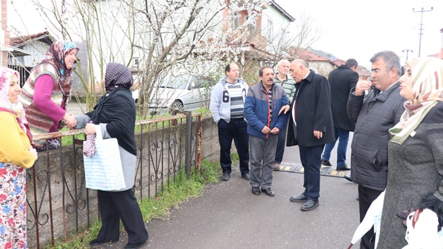 Elmatepe’de çalmadık kapı, sıkmadık el bırakmayarak gönüllere dokunan Erol Şahin, çocukları da unutmadı ve çocuklara çikolata dağıttı.