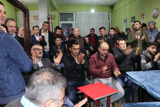 Dernek Başkanı Fikri Kayacan ve Yönetim Kurulu Üyeleri ile görüşen Erol Şahin, gerçekleştirdiği görüşmeden sonra kendisini kahvehanede bekleyen vatandaşları ziyaret etti.