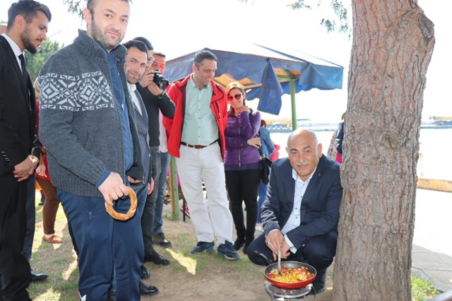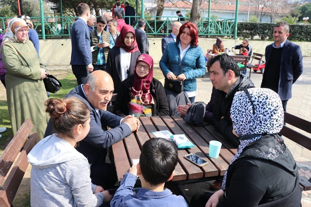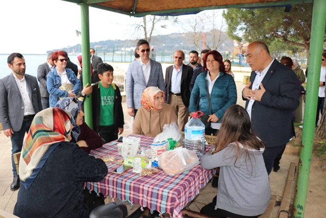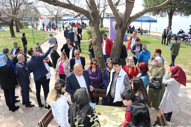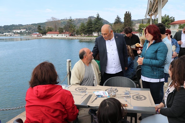 AK Parti İlçe Yönetim Kurulu Üyeleri, Belediye Meclis Üyesi adayları, Gençlik ve Kadın Kolları üyeleri ve kalabalık bir grup ile sahilde yürüyen Erol Şahin, sahil boyunca halk ile selamlaşıp sohbet etti ve hafta sonunu çay bahçelerinde geçiren vatandaşlar ile selamlaştı.