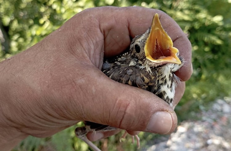 Zonguldak Göldağı’nda orman gezisi yapan eski Komando Şevket Açıkgöz, yuvasından düşen yavru kuş buldu.