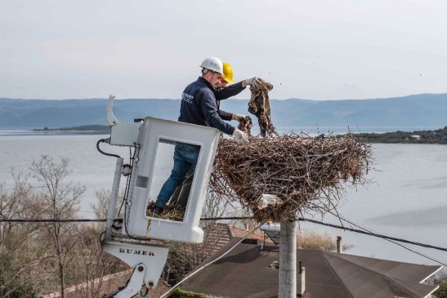 Karacabey Belediyesi'ne bağlı ekipler yuvalarda geleneksel bahar temizliğini tamamladı. Meşhur Yaren Leylek'in de yaşadığı yuva canlı yayından da an ve an izlendi.