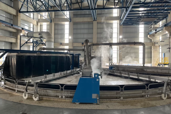 Dört kademeli arıtma sistemiyle baca gazı emisyonları Avrupa normlarının altında tutulurken, özel silolar hammadde tozunun çevreye yayılmasını önlüyor.