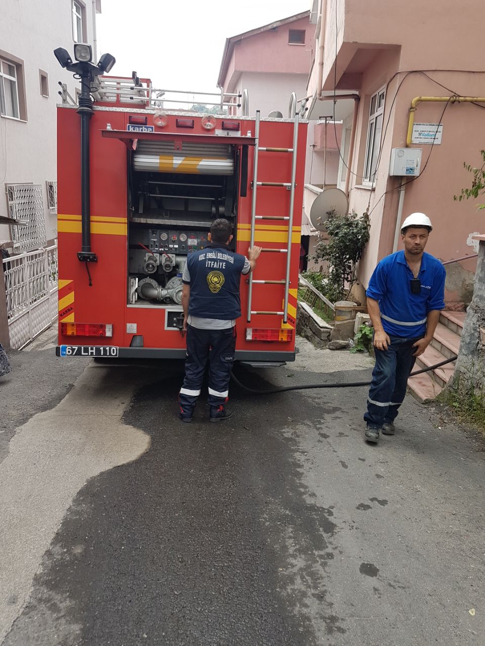 Kdz.Ereğli Belediyesi İtfaiye ekiplerinin zaman kaybetmeden müdahale ettiği evde büyük çapta maddi hasar meydana geldi..