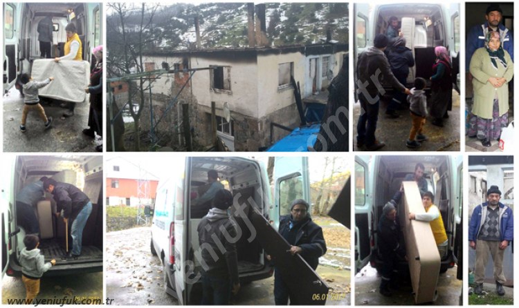 Raif Sorhan ve ailesine 2 baza, 2 yatak, 1 yatak odası takımı, gardrop ve bulaşık makinesinden oluşan eşya yardımında bulunan Belediye Sosyal İşler Müdürü Mehmet Aksoy, İlçe sınılarımız içinde ihtiyaç sahibi vatandaşlarımıza yeni kurduğumuz Gıda ve Giyim Bankasından yardımlarımıza başladık. Belediye Başkanımız Hüseyin Uysalın talimatıyla eve yanan Sorhan ailesine eşya yardımında bulunduk. Bu ailemize ve mağdur olan ailelere bundan sonrada sahip çıkacağız ve yanlarında olmaya devam edeceğiz dedi.