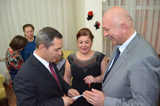 Nişan kurdelesini Başkan Uysal'ın kestiği merasimle, meslektaşlarımız evliliğe ilk adımı atmış oldu..