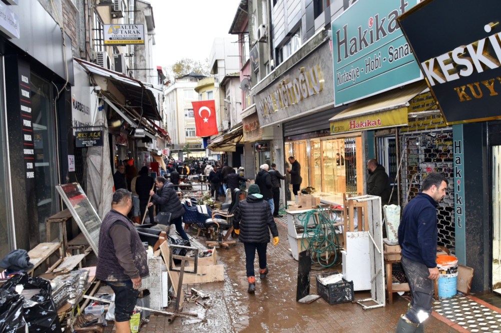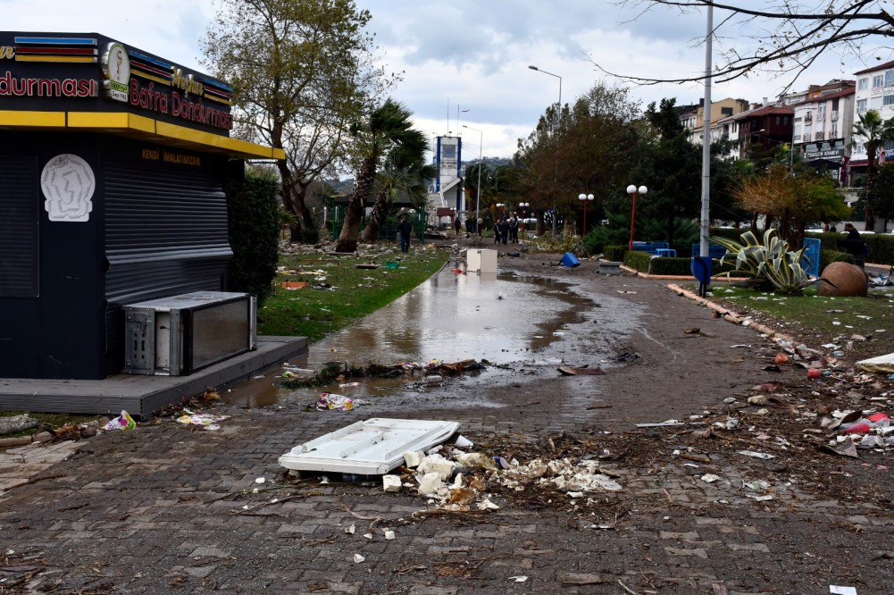 Kdz. Ereğli’de etkili olan fırtına ve yağışlı havanın etkileri gün ağardıktan sonra korkutucu boyutlara ulaştığı görüldü. Pençes deresinin taşması sonucu çarşı merkezindeki tüm dükkanları su bastı, sahil bandı harabeye döndü, çok sayıda evin çatısı uçtu, ağaçlar devrildi. Kdz. Ereğli Belediye Başkanı Halil Posbıyık, yaraların sarılması için 600 personeli sahada görevlendirdi. Şimdi felaketin izleri silinmeye çalışılıyor.