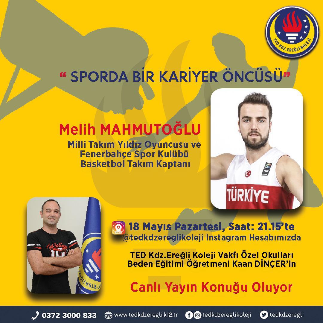 TED Kdz.Ereğli Koleji, Milli Basketbolcu, Fenerbahçe Basketbol Takımı Kaptanı Melih Mahmutoğlu’nu yarın (18 Mayıs Pazartesi) saat 21.15’te instagram canlı yayınında ağırlayacak.