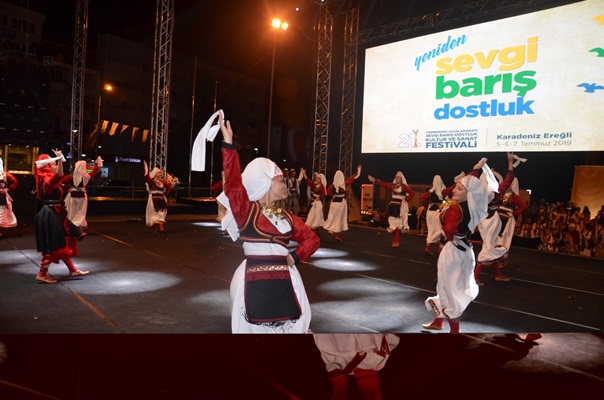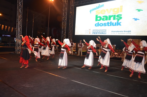 - Sevgi, Barış, Dostluk Kültür ve Sanat Festivali’ne katılmak üzere Kdz. Ereğli’ye gelen 6 ülkenin halk dansları grupları oyunlarıyla festivale merhaba dedi.