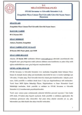 Filyos Limanı OYAK Güvenlik görevlisi alımı şartları belli oldu