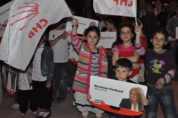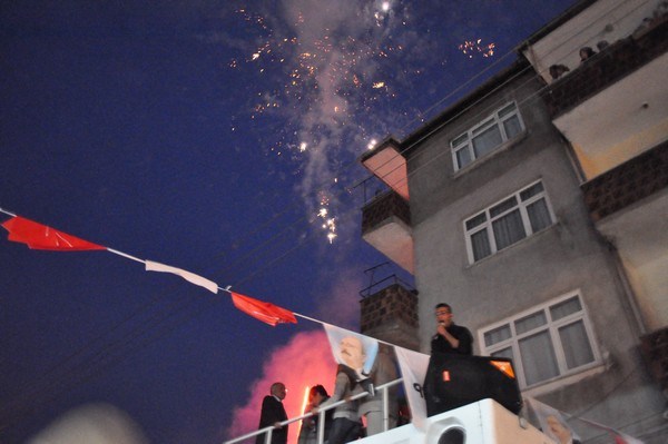 CHP Zonguldak Milletvekili adayı Neriman Posbıyık ve eşi Kdz.ereğli Belediye Başkanı Halil Posbıyık mahalle ziyaretlerinde davul-zurnalarla karşılanıyorlar..