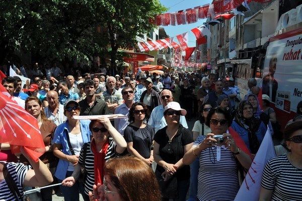 CHP Zonguldak Milletvekili adayı Neriman Posbıyık: "Fazla söze gerek yok. Burayı dolduran yüzlerce kişiyi gördükten sonra fazla konuşmak istemiyorum. 3 Milletvekilini aldık bile. Bize güvendiğiniz ve inandığınız için çok teşekkür ederim."