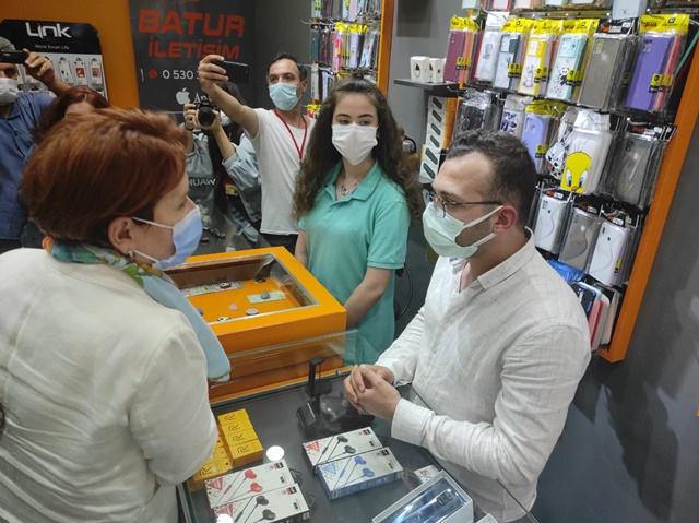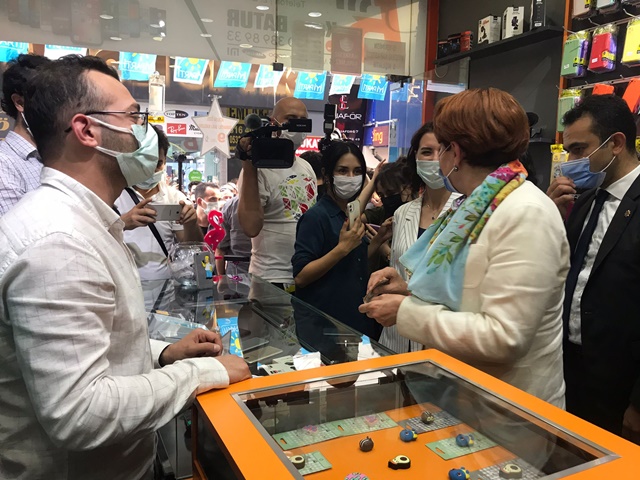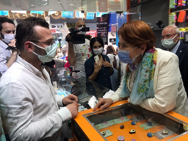 İYİ Parti Genel Başkanı Meral Akşener, Kdz. Ereğli'de bazı esnafları, çarşı merkezinde ziyaret etti.