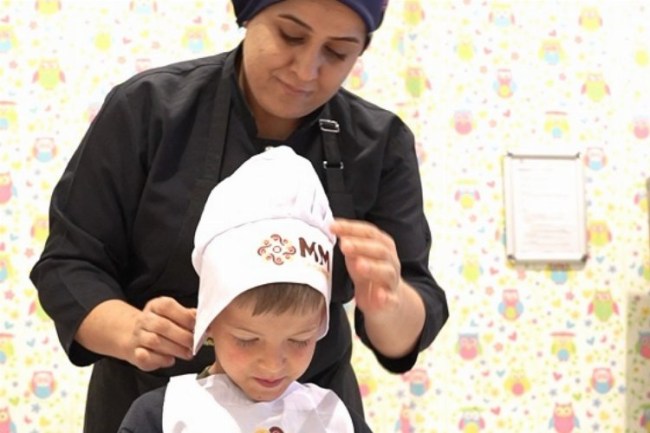 Gaziantep Büyükşehir Belediyesi'ne bağlı Mutfak Sanatları Merkezi'nin (MSM) bugünkü şefleri Masal Parkı çadır kentinde konaklayan depremzede çocuklar oldu.