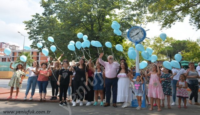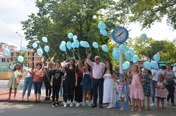 Etkinliğin sonunda Başkan Posbıyık ve gençler, saatin çevresinde birlikte fotoğraf çektirerek, gökyüzüne mavi balon bıraktılar.