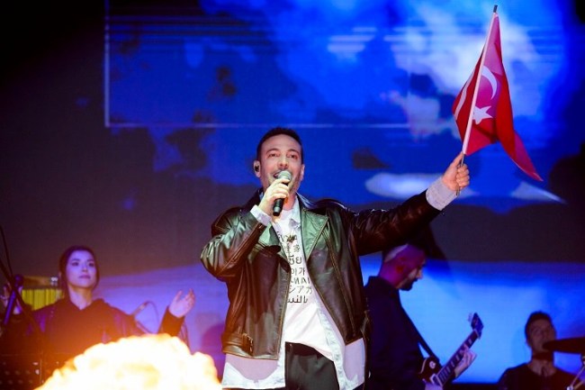 Meydanda toplanan binlerce müziksever, ellerindeki Türk bayraklarıyla adeta yerinde duramadı.