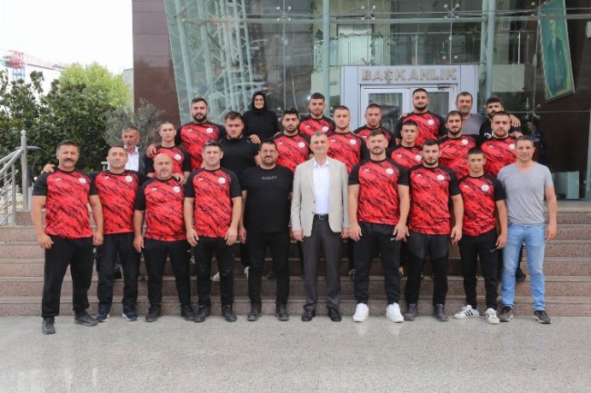 Gölcük Belediye Başkanı Ali Yıldırım Sezer, bu yıl 663'üncüsü düzenlenecek Tarihi Kırkpınar Yağlı Güreşleri'nde yarışacak Gölcük Belediyesporlu pehlivanları Edirne'ye uğurladı.