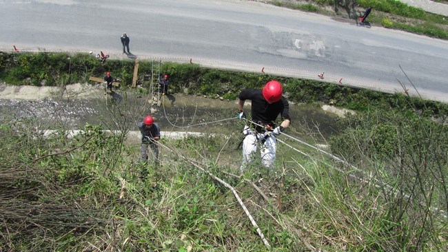 Bir önce ki pazar günü Meydan başı köprüsünde iple inip, bir de temsili yaralı kurtarma tatbikatı gerçekleştiren ‘Gönüllü İtfaiyeciler’in 1. ve 2. mezunları, dün de 50 metreden iniş yaptı.