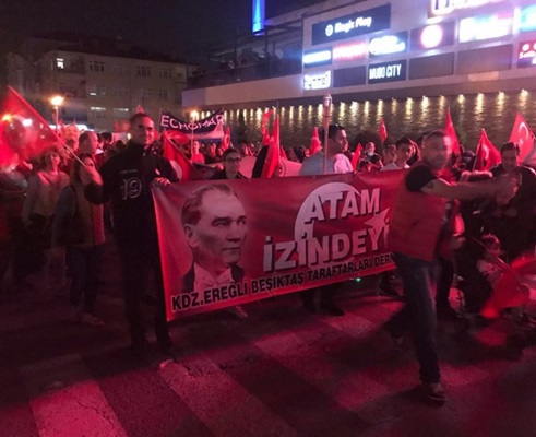 Zonguldak Ereğli ilçesinde 29 Ekim Cumhuriyet Bayramı Fener alayı yoğun katılımla gerçekleşti