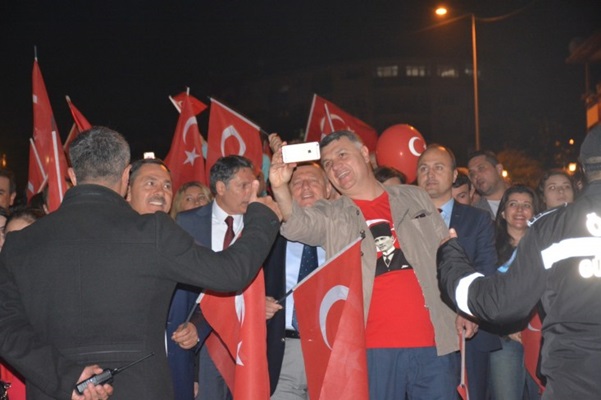 “Güzel şehrimin güzel insanları; Cumhuriyetimizin ilanın 95. yıl dönümünde ilçemizde düzenlediğimiz Fener alayında yine farkını ortaya koydu. 7'den 70'e her yaşta hemşerilerimin katılımıyla Cumhuriyet Bayramımızı kutladık. Bizler bir ve beraber oldukça, Cumhuriyetimizi ilelebet yaşatmaya kararlıyız. Katılımları için güzel şehrimin güzel insanlarına teşekkür ediyorum. Başta Gazi Mustafa Kemal Atatürk olmak üzere tüm istiklal kahramanlarını rahmetle anıyorum.”